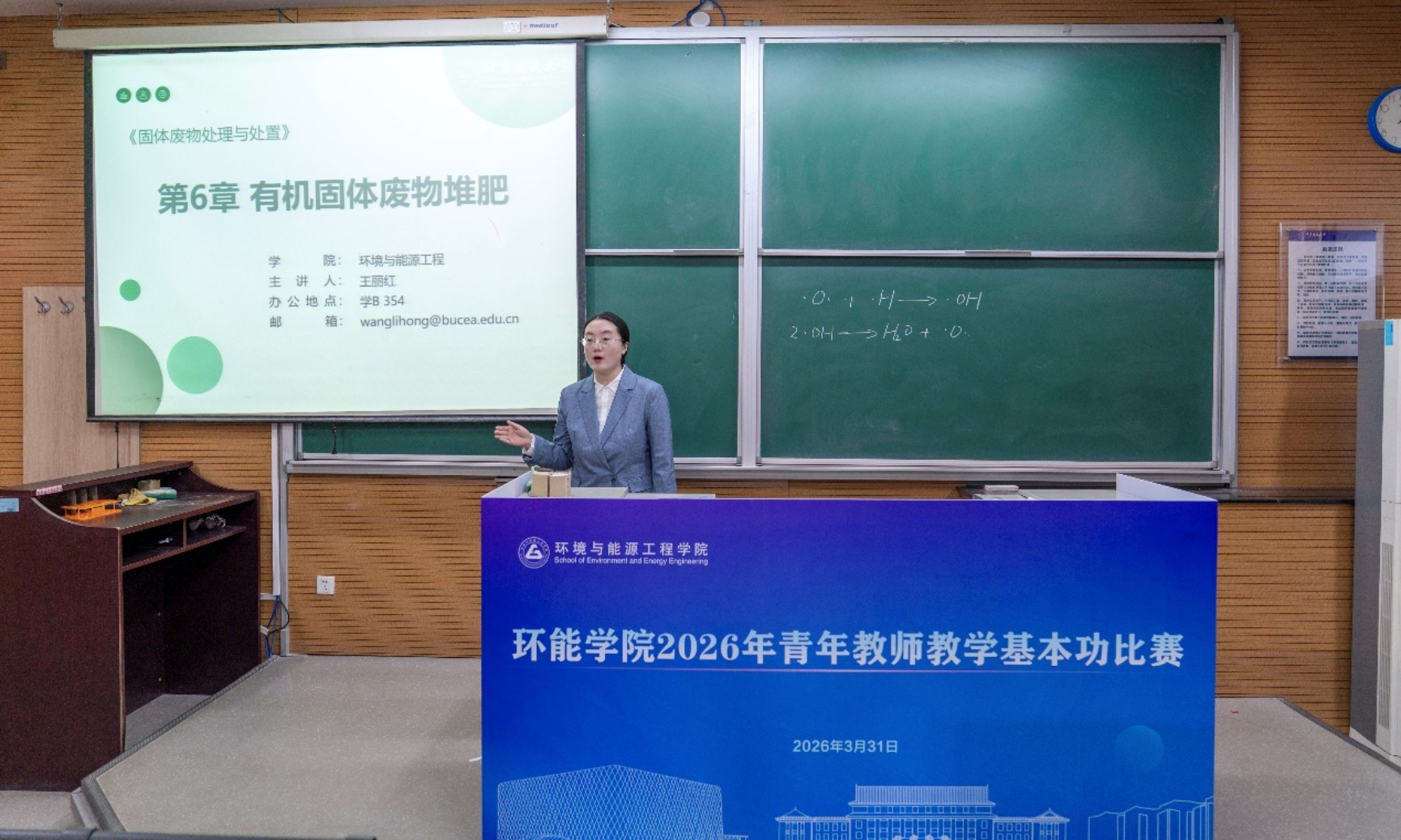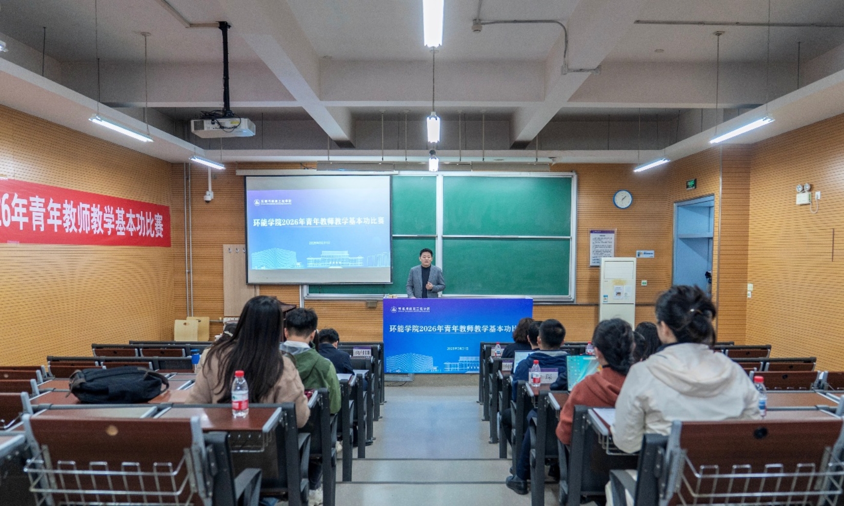 按照抽签排序,参赛青年教师依次进行15-20分钟的教学展示。教师们紧扣环能学科专业特色,精心设计教学环节,将前沿专业知识与创新教学方法有机融合,在教学设计、课堂讲授、板书书写、教学互动等方面各展所长,充分展现出扎实的教学功底、先进的教学理念与昂扬的育人风貌。
